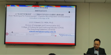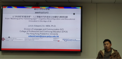 12月17日,香港理工大学温植胜博士应学院邀请,为学院师生作题为从“从‘多语者’到‘超语者’:人工智能时代的语言认知重构与教育创新”的学术讲座。本次讲座在逸夫人文楼A2014举行,由太阳集团城娱8722副院长杨小彬教授主持。