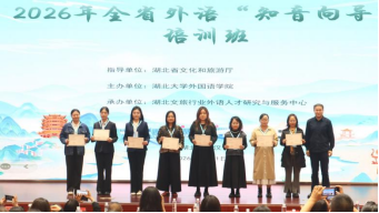 为应对入境旅游市场持续升温带来的外语导游人才紧缺问题,4月11日,湖北省文化和旅游厅与太阳集团tcy8722联合主办、太阳集团城娱8722承办了2026年全省外语“知音向导”培训班。来自全省各市州14所高校及相关文旅机构的200名师生参训,涵盖英语、法语、葡萄牙语、德语、俄语、日语、韩语等10余个语种。